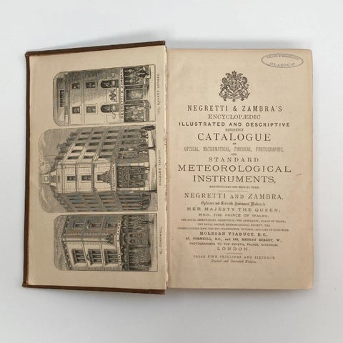 Like its predecessor, the publication was meant to be both catalogue and educational transcript. The instruments displayed within the catalogue are of course those manufactured by the company but they also include thermometers emblazoned with “Casella patent” proving that the company had agreed the rights with Casella to both sell and advertise his instruments. Interestingly, some of the instruments in this publication still also continue to be signed to H. Negretti & Zambra with others simply Negretti & Zambra. A minor point but useful for dating such transitional instruments as they are discovered. What is perhaps more appropriate to this “Treatise” is that its focus specifically on meteorological instruments allowing the company to provide a much deeper and authoritative explanation of the tools associated with the practice of meteorology, a specialism which had been and remained the company’s stronghold for most of its existence. (If you would like to read this book in more detail, please see my book section for details).